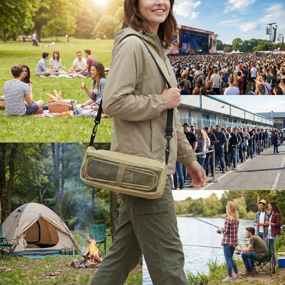 Desde conciertos y festivales hasta acampadas, colas, citas o viajes — donde necesites descansar.