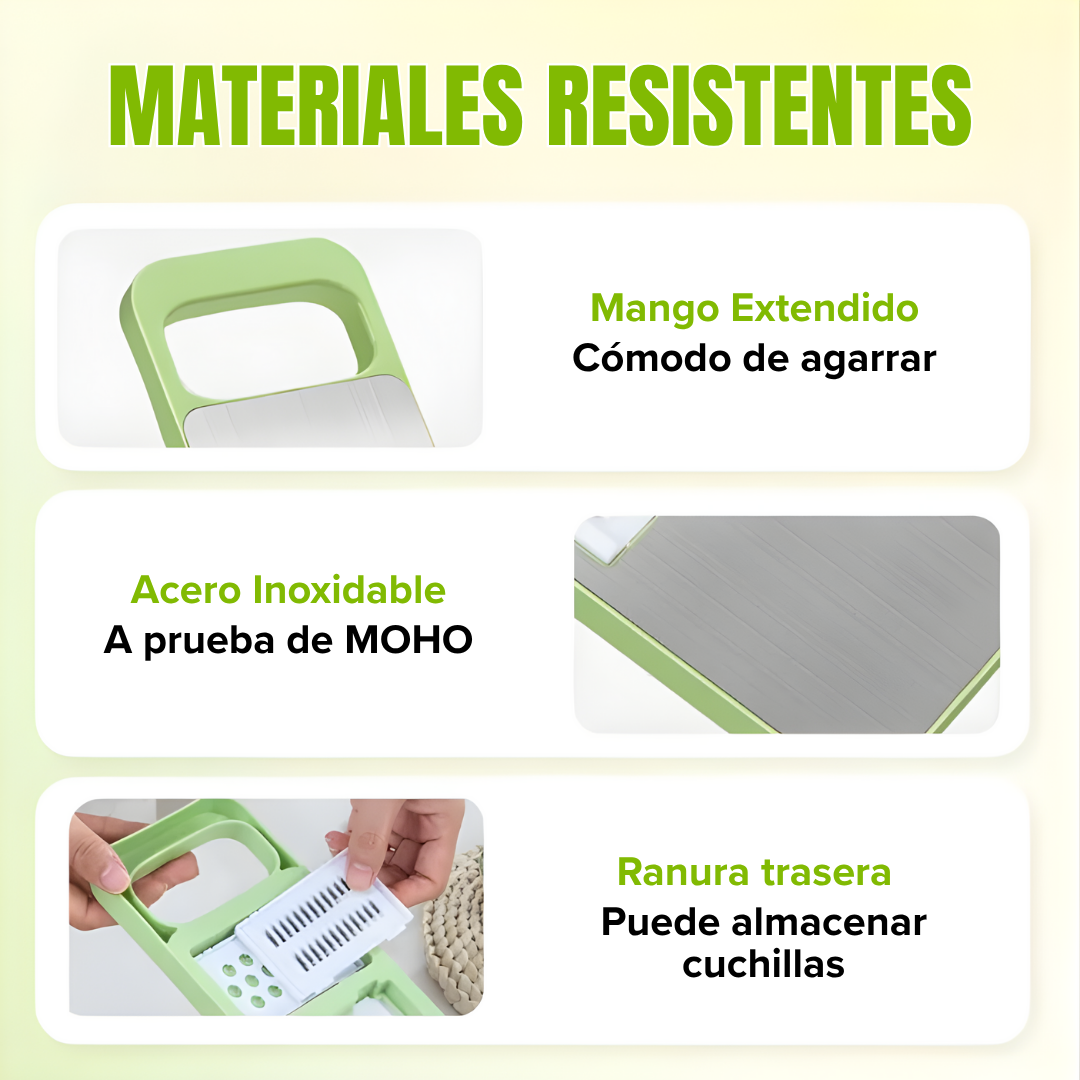 - 6 cuchillas intercambiables para cortar, rallar, laminar y hacer juliana.