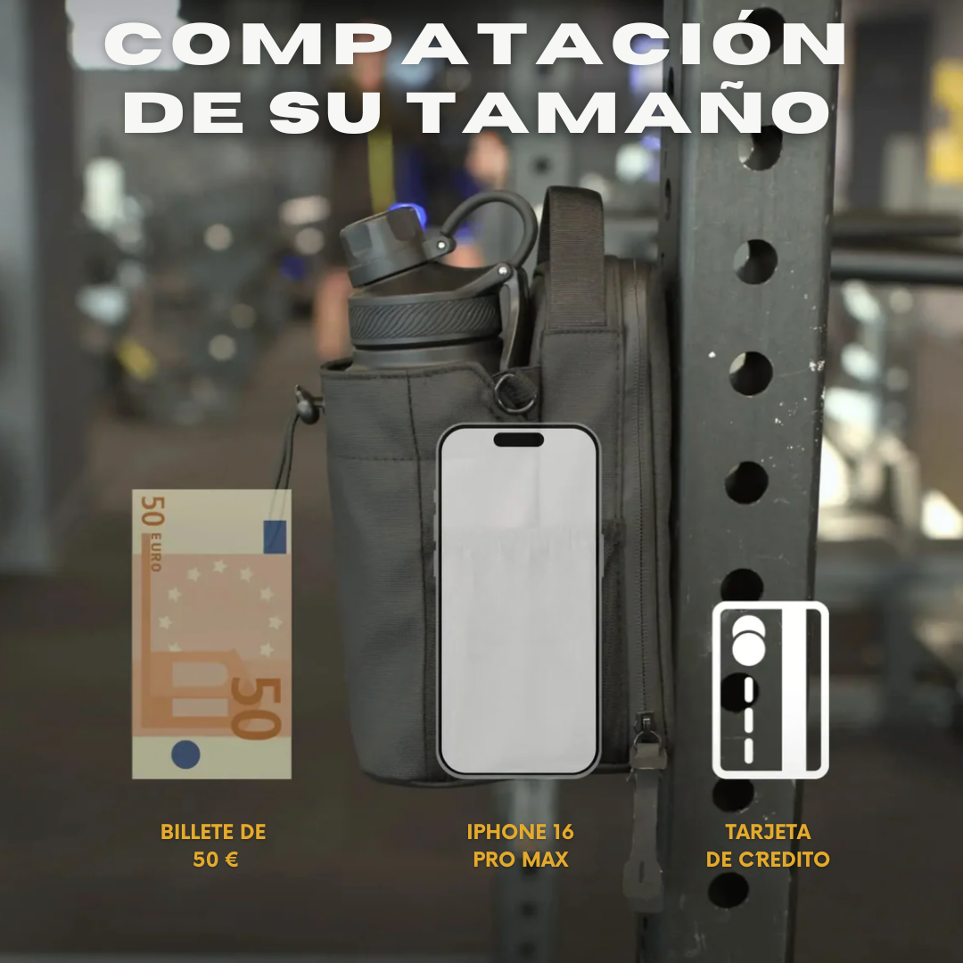 ✔︎ Organiza todo en un solo lugar: Compartimentos internos para botella, llaves y móvil.