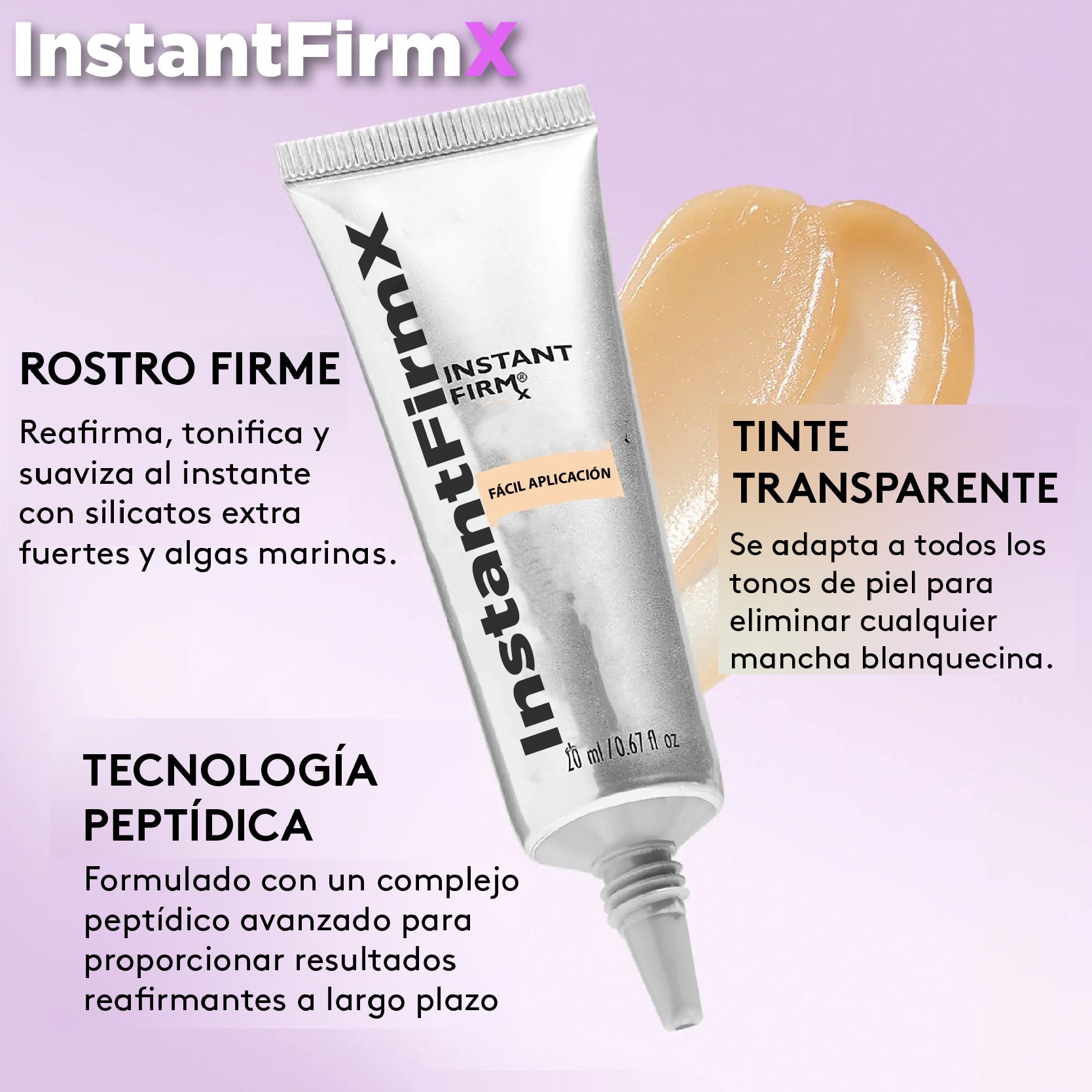 Aprobada por dermatólogos y oftalmólogos, InstantFirmX ha sido formulada sin fragancias ni alcoholes agresivos. Su composición hipoalergénica la hace ideal incluso para pieles sensibles.