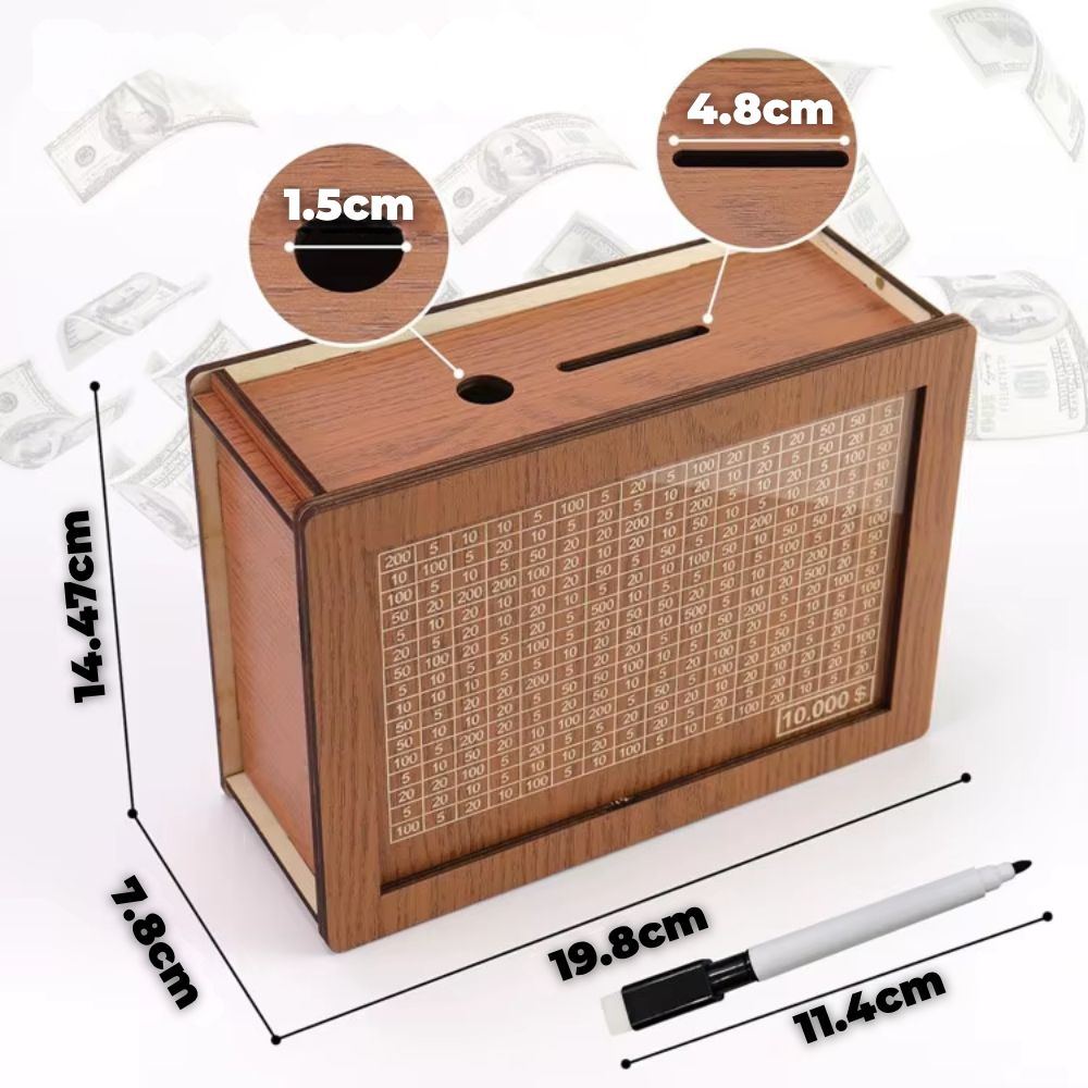 Incluye: 1 hucha Save10k con mostrador + 1 rotulador