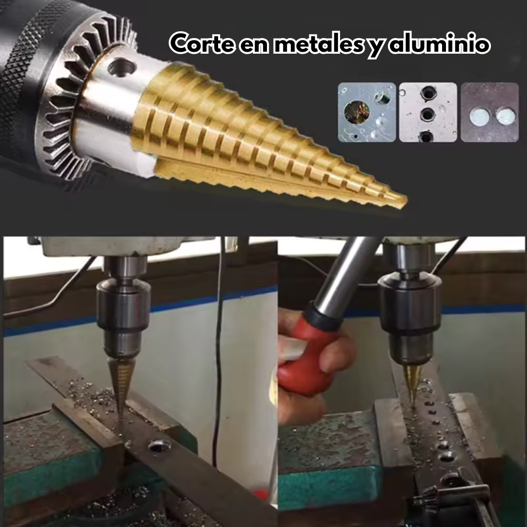 ✅ Brocas escalonadas de titanio ultrarresistente para máxima durabilidad
